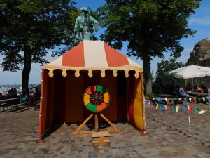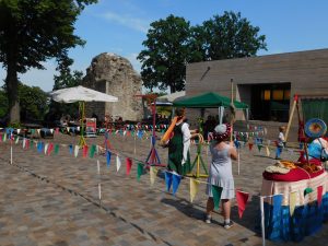 In diesem Jahr war die Aufteilung und Anordnung des Mittelaltermarkts neu, hat man doch jüngst erst neue Teile der Burg gefunden und ausgegraben. Und so war der Markt eigentlich eher unterhalb der Burg, um die Burg herum kreisförmig angeordnet.