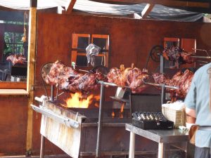 Marktpfeife und Trommel brachten schon mal Stimmung. Flammlachs und Spanferkel, Holzofenbrote, Schwarzbier, Kirschbier und eine leckere naturtrübe Apfelschorle vor Augen und Mund ließen uns die erste Runde etwas schneller gehen, so dass wir den ersten Halt an der großen Bühne einlegten und es uns erst einmal gut gingen ließen.