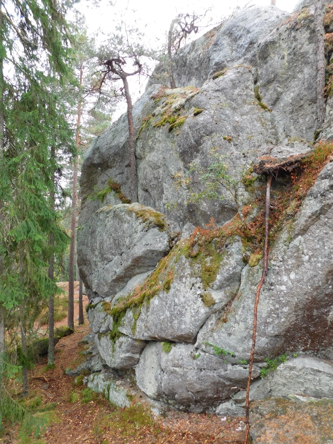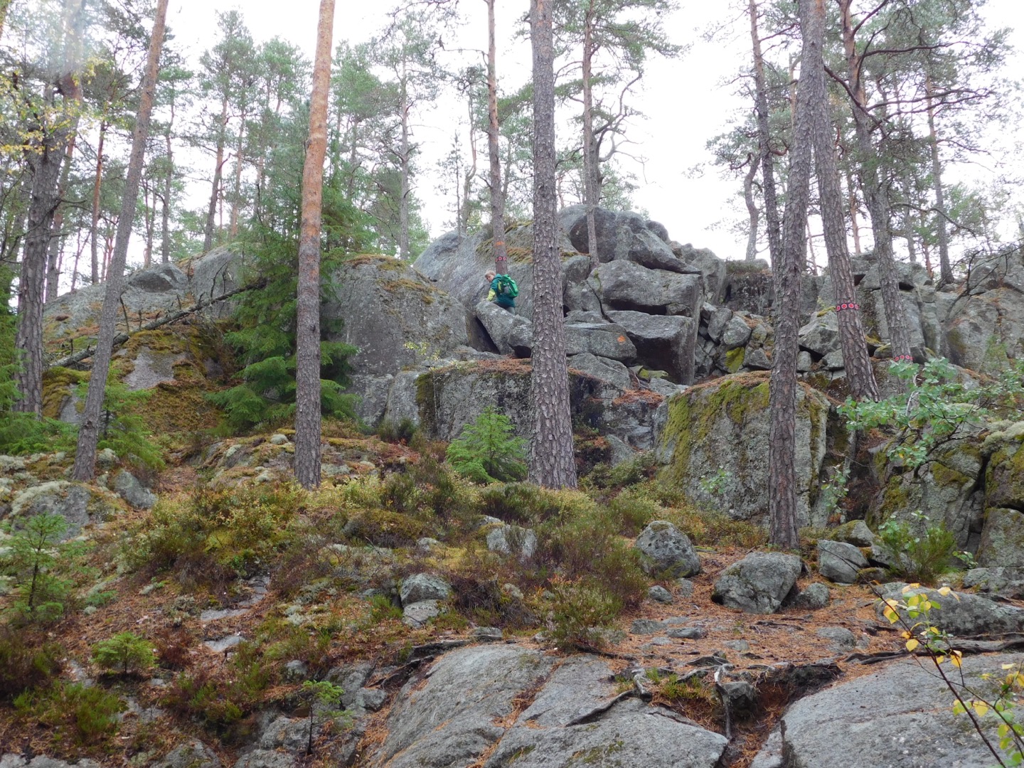 Scheinbar haben wir den Rundgang anders herum gemacht, als in der Beschreibung und gelangten zuerst zur „Lille Trollkyrka“, also zur kleinen Trollkirche, die schon einen beachtlichen Felsen ausmachte.