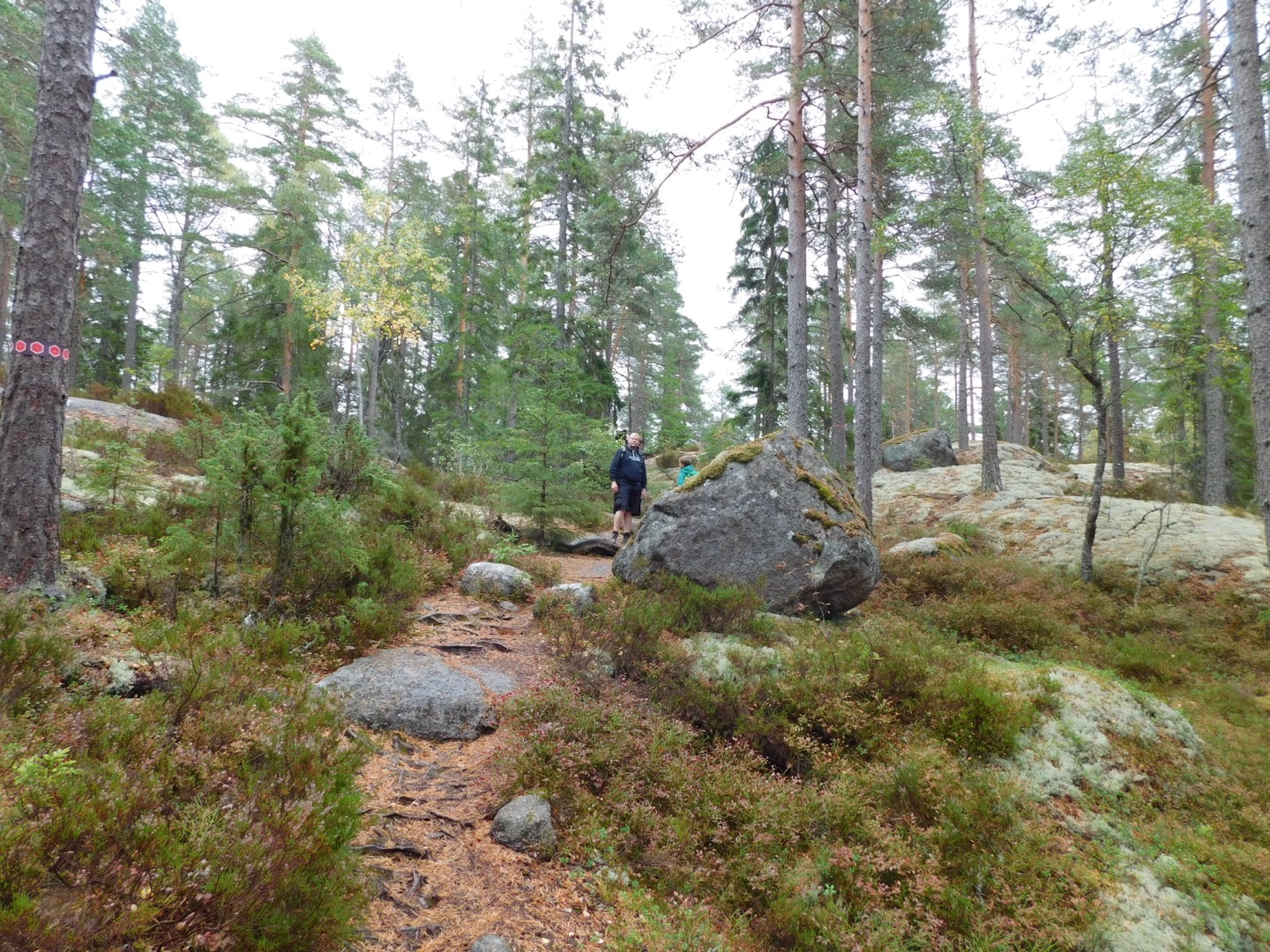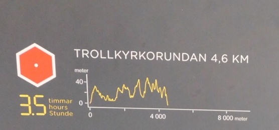 Also packten wir alles zusammen und fuhren zum „Huvudsentre“ (Haupteingang) des Parks, denn dort sollte es losgehen auf unsere ca. 4,6 km lange Wanderung. In der offiziellen Routenbeschreibung hieß es, dass man 3 1/2 Stunden für die Wanderung bräuchte, obwohl man ja 5 km locker in einer Stunde schaffen könnte. Da wir aber schon so unsere Erfahrungen gemacht haben, haben wir die 3 1/2 Stunden ernst genommen und machten uns auf nicht ganz einfache Wanderwege gefasst.